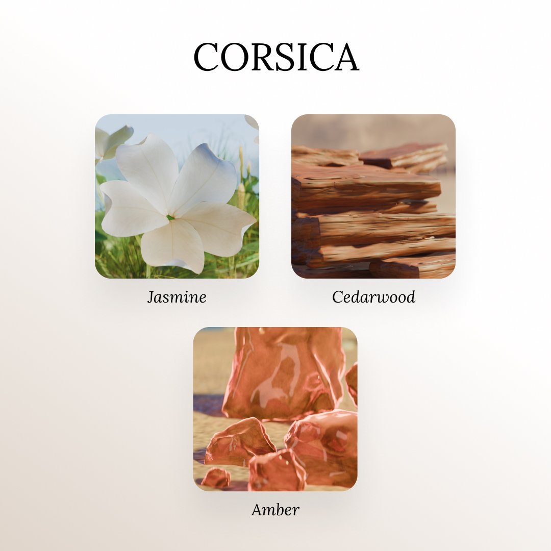Corsica is a luminous and sophisticated fragrance that artfully blends floral, woody, and amber accords.