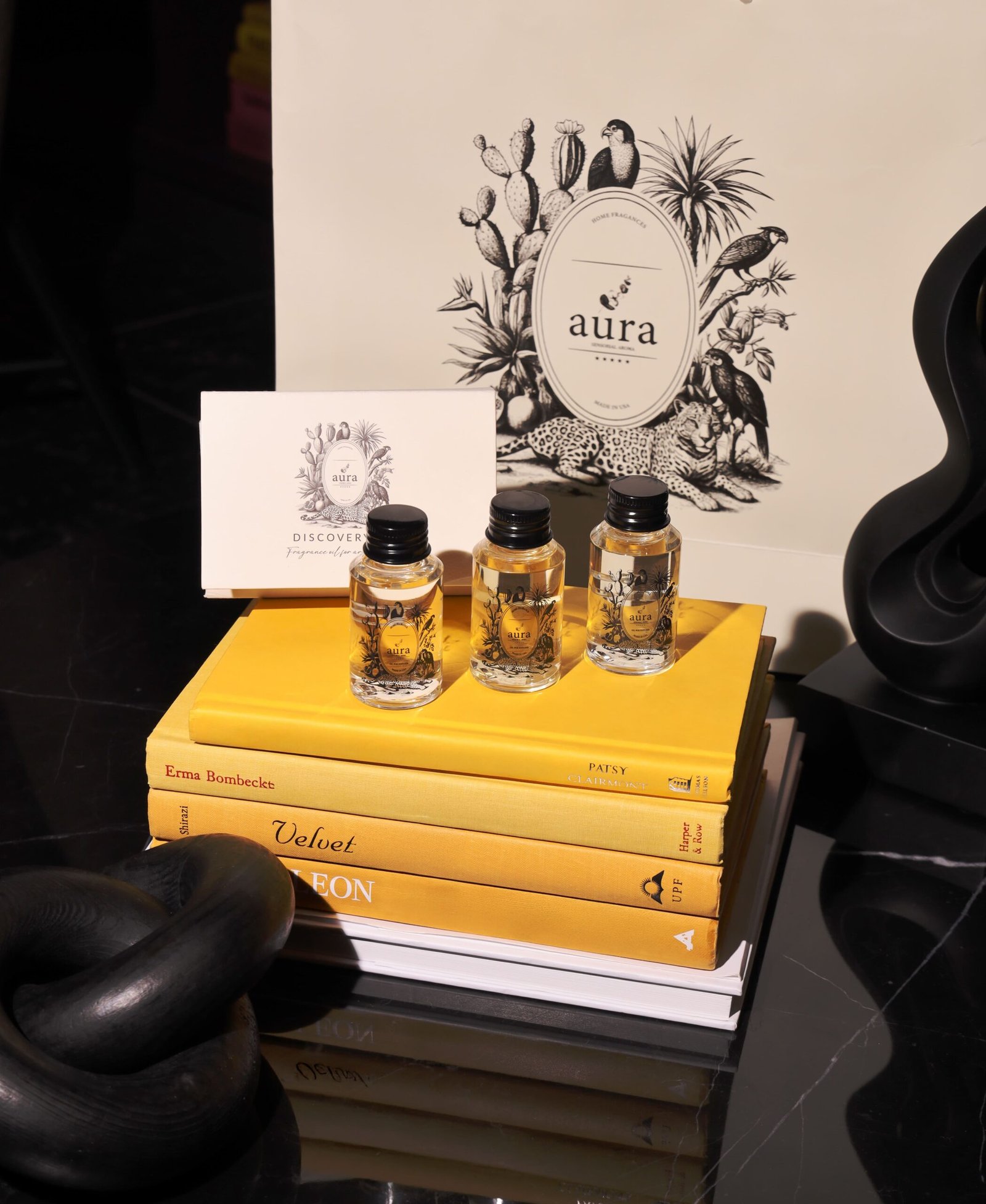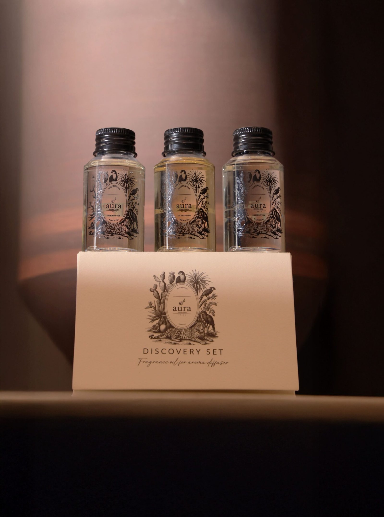 Indulge in the elegance of the Aura Sensorial Aroma Discovery Set, featuring our top-selling French Riviera Collection scents: Marseille, Corsica, and Provence. Each 1.7 fl. oz (50 ml) bottle is meticulously crafted to deliver a long-lasting, mood-boosting aroma that transforms any space into a luxury spa experience.